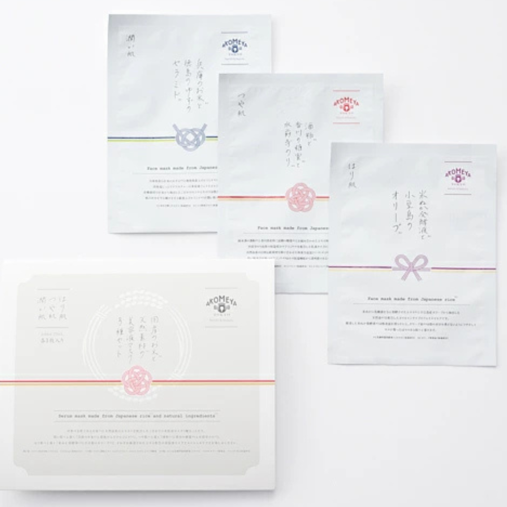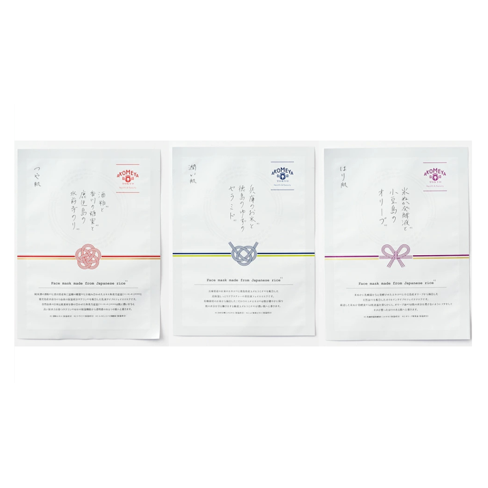 Enjoy special care with the serum masks containing carefully selected extracts: "Hyogo rice and Tokushima yuzu ceramide" for moisturizing skin, "Sake lees, Kagawa molasses and Suizenji laver" for glowing skin, and "Rice bran fermentation liquid and Shodoshima olive oil" for firm skin.