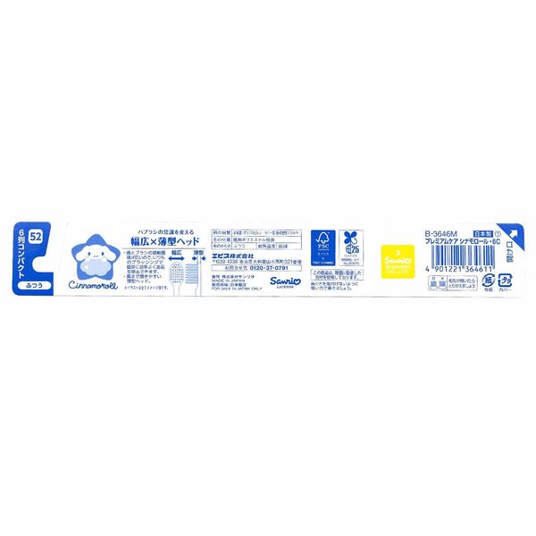 EBISU Premium Care (Cinnamoroll / Hello Kitty) 6-row compact tooth brush, 1 piece