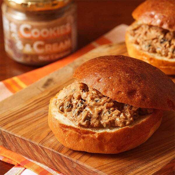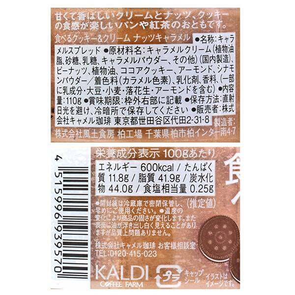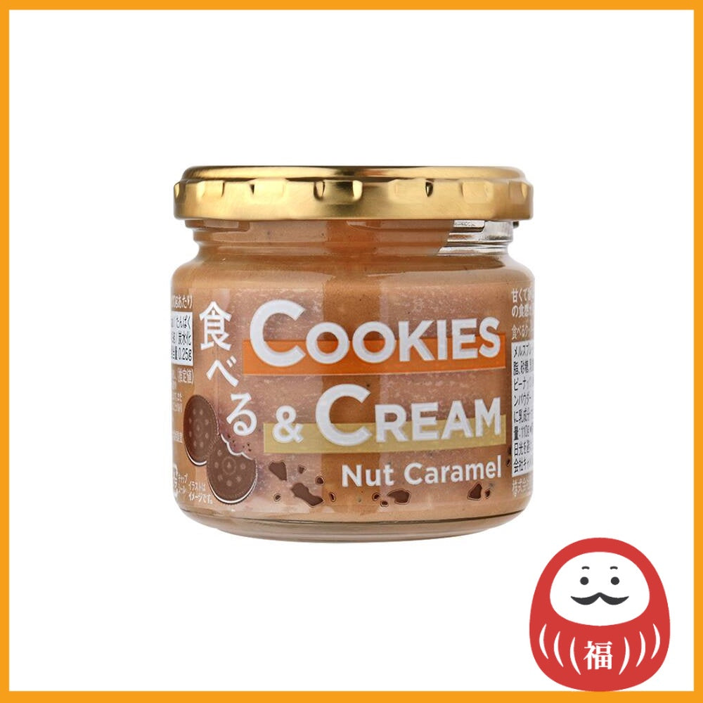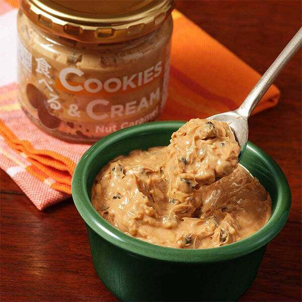 Aromatic cream with caramel and cinnamon, crushed peanuts and almonds, and crunchy cocoa cookies. Enjoy it with bread or even with vanilla ice cream!