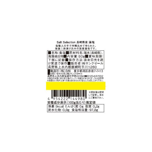ST. COUSAIR - Algae salt from Nagasaki Prefecture 80g This product is full of flavor with a hint of sweetness. It enhances the taste of ingredients in simple dishes. It is popular at St. Cousair stores.